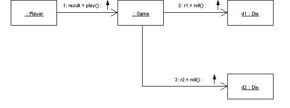 A good object-oriented design should be able to catch design problems before any code is written. There are many tools a designer may use: UML, patterns, inheritance, polymorphism, encapsulation… Where do you start? What are the steps? How do you identify design flaws? The dice game described by Craig Larman in Applying UML and Patterns begins with a use case: Play a Game. The actor is a player. The player rolls the dice. If the sum of the rolls is equal to seven, the player wins; otherwise, the player loses. Abbreviating the design process, the class and collaboration diagrams for this use case are shown in Figures 1 and 2. The Java code is shown in Solution 1. The Java code was created by mapping the class and collaboration diagrams to code using a few basic translation rules. The purpose for creating the Java code is to highlight potential design flaws in a way familiar to students with little or no training in object orientation. Is there anything wrong with this design? If there is, at which step of this process could the problem have been found? ![]() Figure 1: Class Diagram - Larman